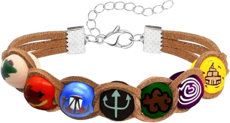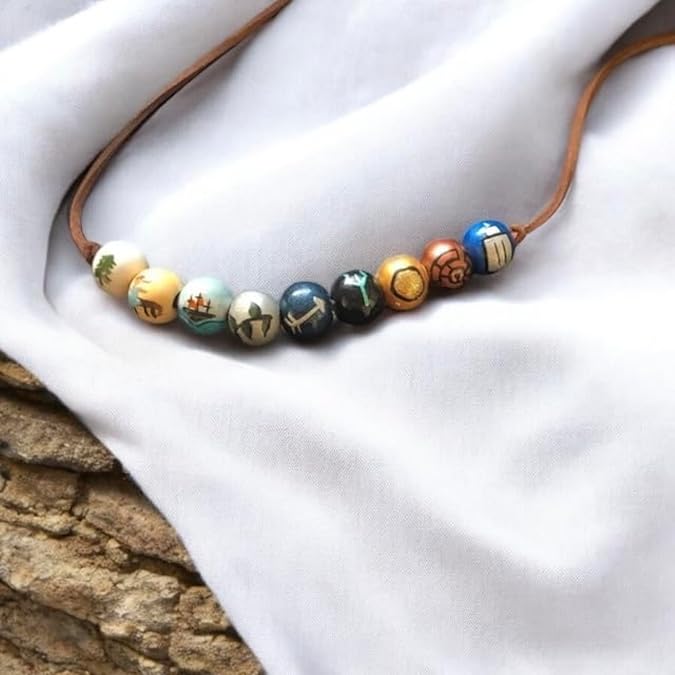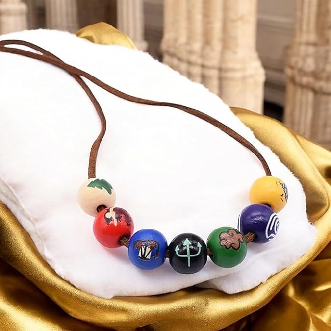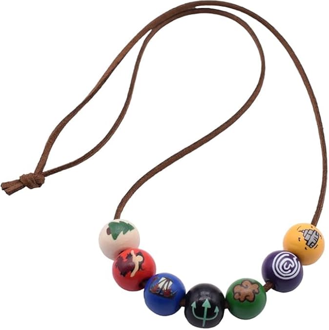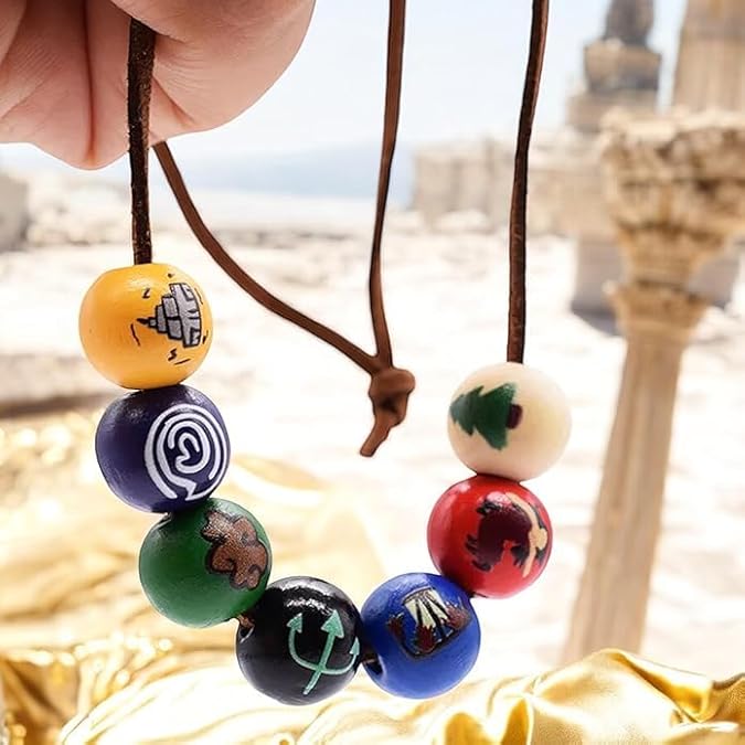 ✅ SYMBOLIC MEANING – The Camp Necklace is given to each Camp Half-Blood camper at the end of each summer at Camp Half-Blood. The head councilors vote on the biggest event of the year and paint it on a bead. The first bead represents Thalia’s pine tree, the second bead features a centaur in a prom dress, the third bead depicts a Greek trireme on fire, the fourth bead shows an olive branch, the fifth bead represents Artemis’s arrow, the sixth bead features Poseidon’s trident, the seventh bead shows the Golden Fleece, the eighth bead displays the labyrinth, and the ninth bead shows the Empire State Building.