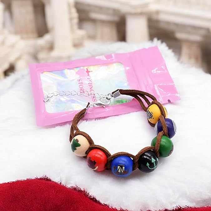 - PERFECTLY FIT & THE BEST QUALITY– The bracelet consists of a quality brown faux leather cord and seven colorful wooden beads. You can use it everyday or as a part of a cosplay costume. Choice is up to you!