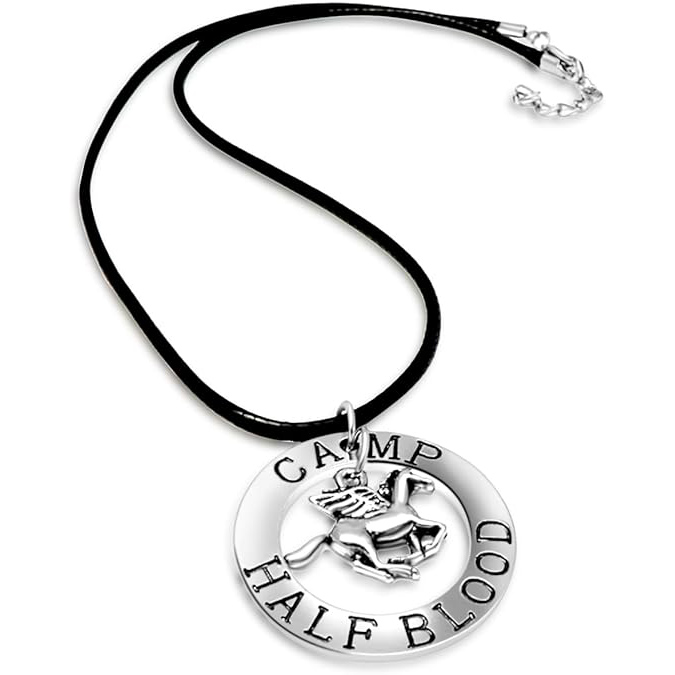 Camp Half Blood Winged Horse Pegasus Circle Olympian Silver Tone Necklace Annabeth Chases