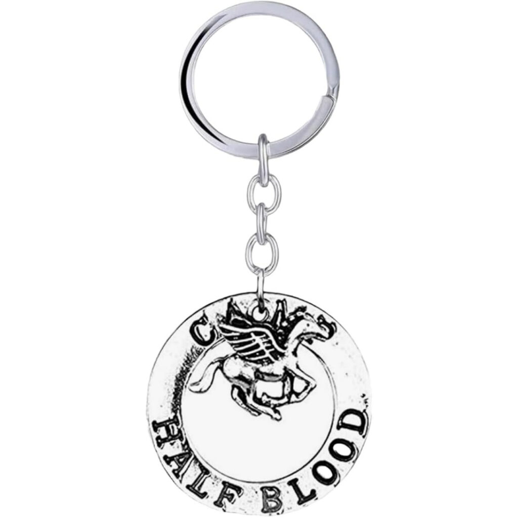 Percy Jackson Camp Half Blood Winged Horse Pegasus Circle Olympian Demigod Silver Tone Keychain Charm