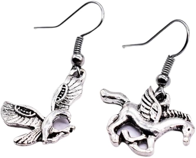Annabeth Camp Half Blood Pegasus Winged Horse Olympian Demigod Silver Tone Drop Dangle Earrings