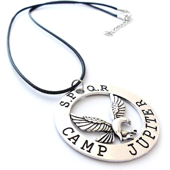 Percy Jackson SPQR Eagle Camp Jupiter Silver Tone Pendant Black Cord Necklace