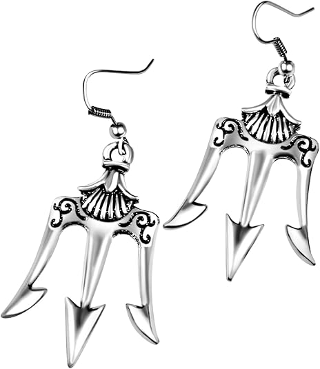 Percy Jackson Poseidon Trident Olympian Demigod Silver Tone Drop Dangle Earrings