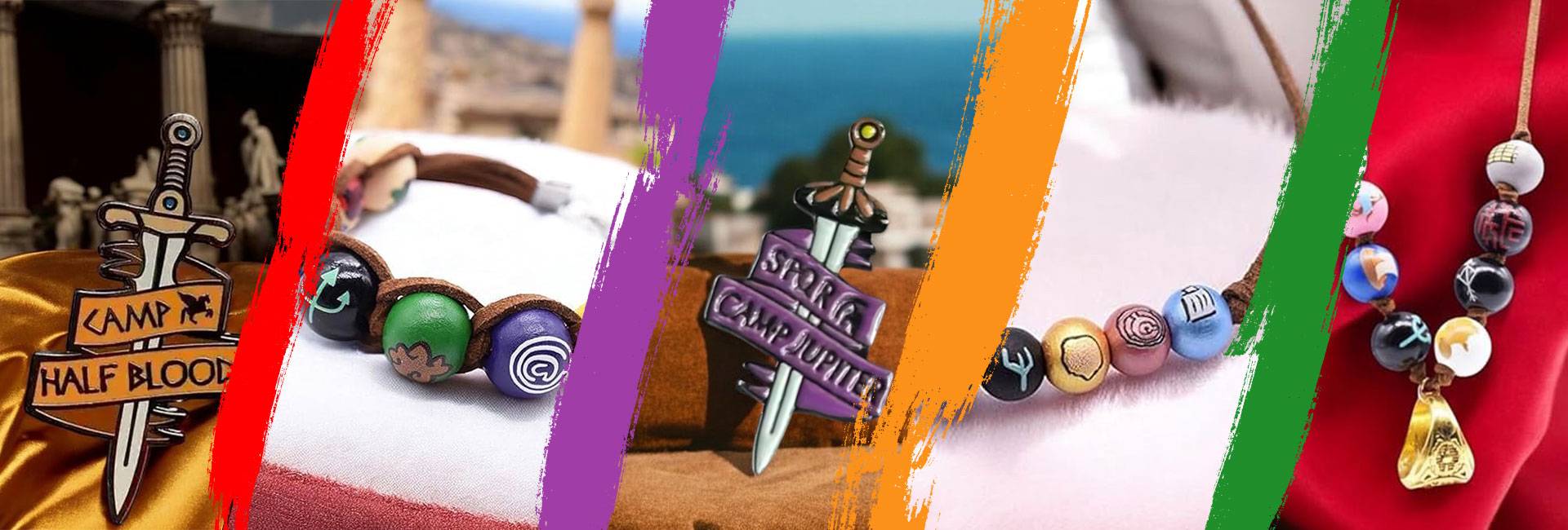 - FANMADE CREATION – This bracelet was created by a fan of the books and represents Annabeth Chase colorful wooden bead amulet. The Camp talisman is given to each Camp Half-Blood camper at the end of each summer at Camp Half-Blood. The head councilors vote on the biggest event of the year and paint it on a bead.